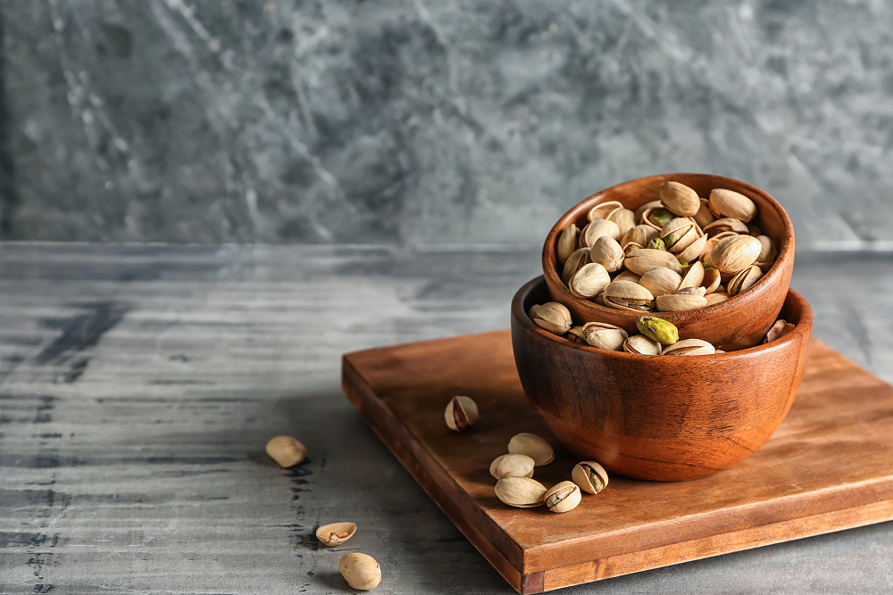 Ще один популярний вид горіхів — фісташки, користь яких не поступається їх смаку і високій калорійності. У них міститься близько 60% жирів, а білки та вуглеводи складають до 18%. Також продукт містить вітаміни груп С і В та мікроелементи — магній, калій, кальцій, залізо, фосфор.