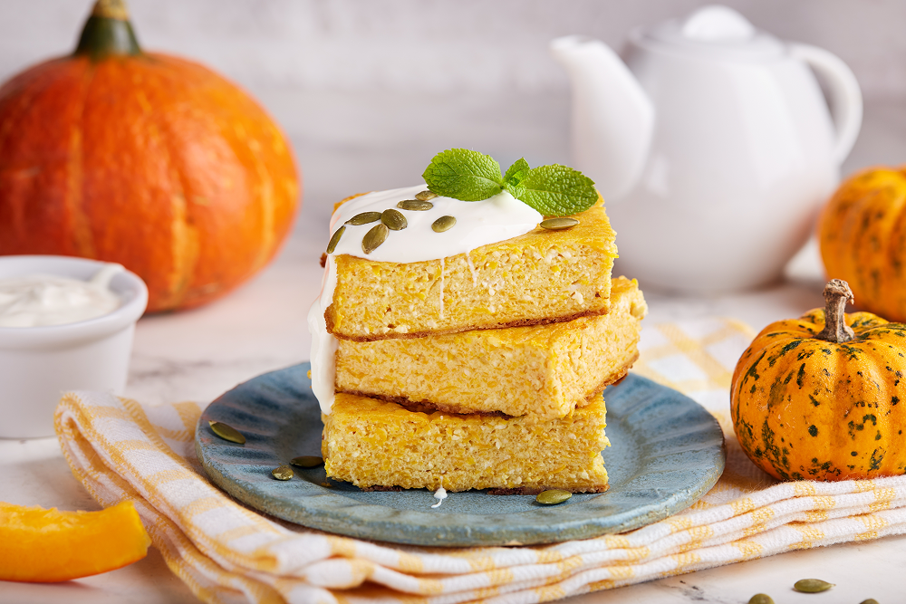 Ніжна і ароматна запіканка, яка поєднує солодкість гарбуза та кремову текстуру сиру. Для приготування запіканки запікай м’якоть гарбуза до м’якості, а потім змішай її з сиром, яйцями, цукром і борошном. Виклади суміш у форму, змащену маслом, і випікай до золотистої скоринки. Ідеально пасує до ранкової кави або чаю!
