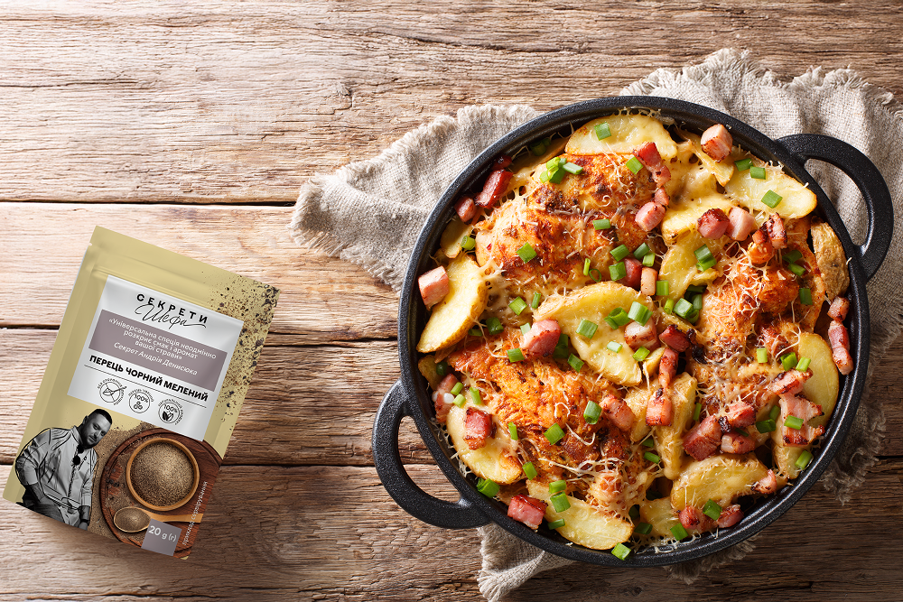 - сіль, мелений чорний перець «Секрети Шефа».