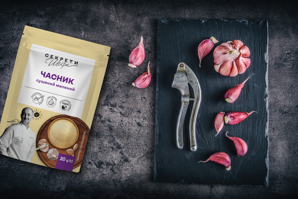 У порошку або гранулах, сушений часник надає стравам прянощів і пікантності, а крім того, відмінно зберігається. Це чудова приправа для курки, риби, морепродуктів, омлетів і овочів. І, звісно ж, сушений часник "Секрети Шефа" можна додавати в рагу, борщі, супи та солянку.